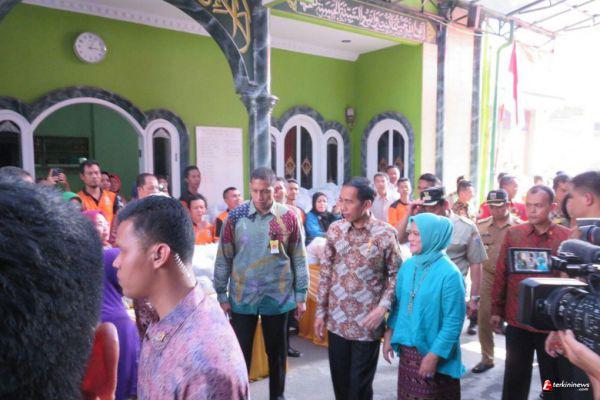 Jokowi berkeliling sekitar 50 meter dari lokasi. Dia bersalaman dengan warga sekitar.