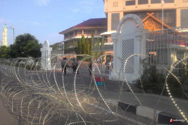 Sedangkan di lokasi utama demo buruh, yakni di depan kantor walikota dan DPRD Batam tampak telah bersiaga aparat kepolisian. Kedua gedung pemerintah tersebutpun telah dikelilingi kawat berduri dan di halaman dalamnya terdapat mobil water cannon.