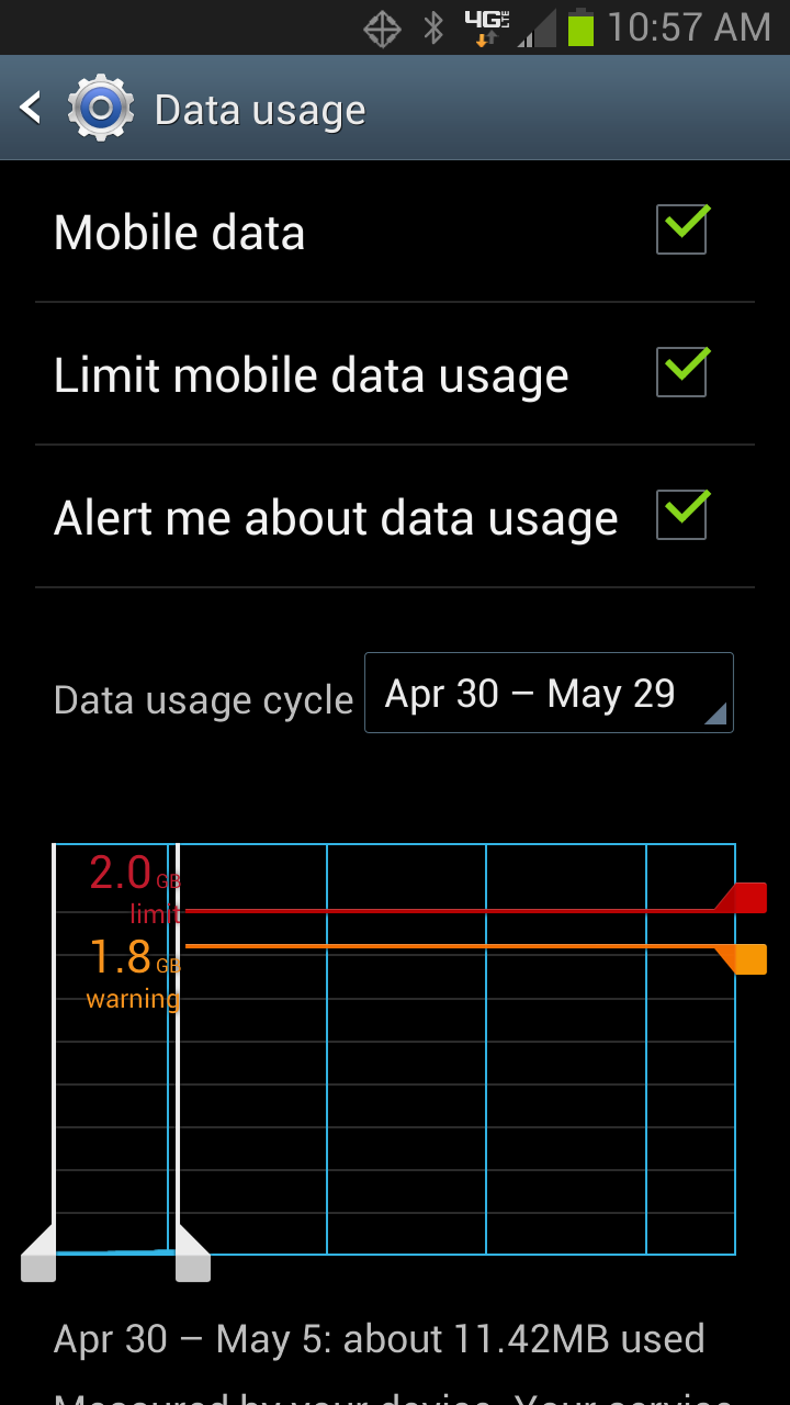 Cara pertama dengan menentukan batasan penggunaan data. Bukalah menu Settings, kemudian pilih Data Usage. Beri batasan data dengan cara menggeser garis oranye, atur juga siklus penggunaan data sesuai dengan awal dan akhir bulan Anda.