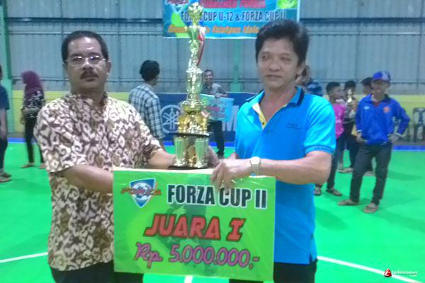 Juara turnamen futsal Forza Cup II itu, berhak membawa pulang hadiah berupa trophy berserta piagam penghargaan dan uang pembinaan. Sementara juara 2, 3 dan 4 tim peserta turnamen lainnya, juga mendapatkan piagam penghargaan dari panitia HUT lapangan Forza Cup II.