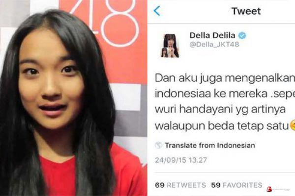 Kesalahan itu ditulis Della dalam akun Twitter miliknya, @Della_JKT48. Usai menulis kesalahan tersebut, cuitan tersebut sempat di retweet sebanyak 69 kali dan difavoritkan 59 pengguna lainnya.
