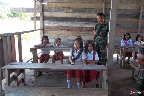 "Jika salah satu guru berhalangan masuk maka guru yang ada akan rangkap mengajar, sejak ada TNI mengajar tidak ada lagi guru yang rangkap kelas," ungkap Pinsensius.