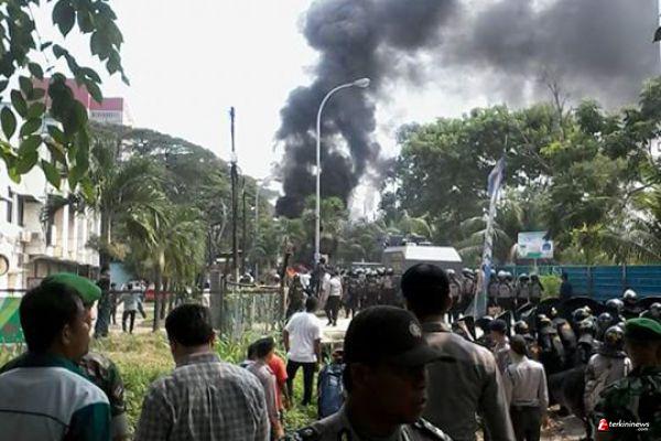 BATAM - Keributan menegangkan sempat terjadi di Ruli Jodoh yang berdekatan dengan Hotel Oasis, Batam. warga ruli yang akan digusur hari ini (23/11/2015) menolak dan melakukan perlawan,