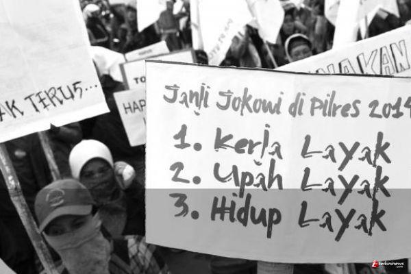 Satu orang yang diharapkan akan bersama buruh dan memperhatikan nasib buruh ternyata tak seberapa sakti. bukannya menuntut yang tidak tidak tapi dialah yang berjanji dulu. ada rekamannya. janji presiden ketika masih kampanye. kerja layak, upah layak hidup layak. tak lupa gaya blusukan ke rumah buruh yang sakit. kini kemana?