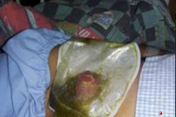 Akibat penyakit ini sang anak hanya bisa mengeluarkan kotorannya dari perut yang dilubangi, tentu merupaka sebuah penderitaan yang amat luar biasa untuk anak masih kecil tersebut.