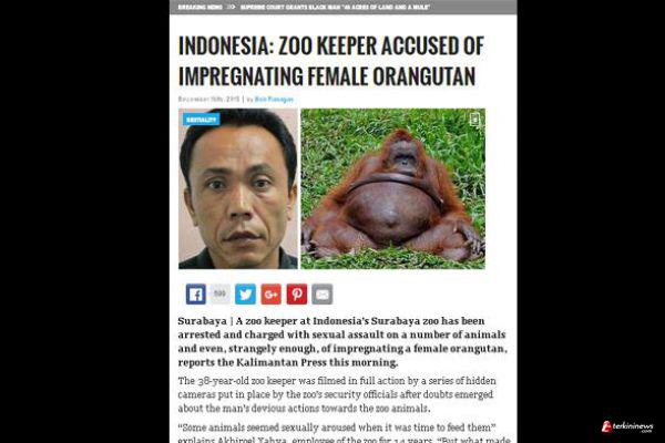 Berita soal orang utan di Kebun Binatang Surabaya yang dihamili oleh petugas KBS, yang diunggah oleh situs World Daily News Report, sudah hampir pasti berita hoax atau kabar bohong.