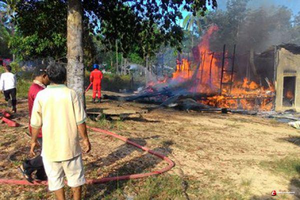 Tidak lama kemudian timbul api dari bagian samping rumah nyala keatas dan merembet ke bagian lain rumah, sehingga menghanguskan seluruh isi perabotan rumah tanpa ada yang tersisa. Sementara mobil pemadaman kebakaran (Damkar) dan petugas BNPB yang datang, saat kondisi rumah sudah dilalap api dan tidak dapat selamatkan.