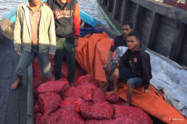 DUMAI (RIAU) - Tim Pol Air Polres Dumai mengamankan satu kapal yang berisi sekira 5 ton bawang merah selundupan asal Malaysia. Bawang merah selundupan itu diamankan sewaktu akan dibongkar di tengah laut, tepatnya di Selingsing, Kecamatan Medang Kampai, Dumai, Sabtu (27/12/15) dinihari sekira pukul 02.00 WIB.