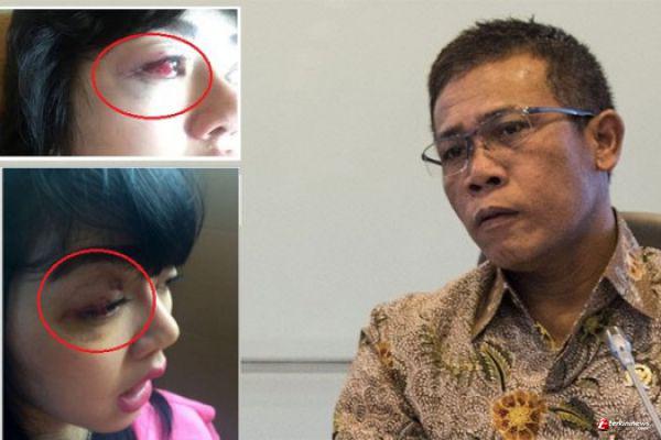Dita Aditya (27), staf ahli Anggota Komisi III DPR Masinton Pasaribu menyebutkan dengan gamblang, bahwa luka di pelipis kanan hingga lebam dimatanya akibat dari pukulan keras yang dihantamkan bosnya sendiri.