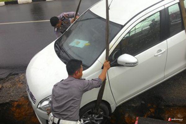 Berdasarkan saksi mata yang berada di lokasi kejadian, mobil mengalami rusak parah di bagian bumper depan karena sempat menghantam pembatas parit. Di tempat ini, sopir berniat mengecek kendaraannya. Pada posisi parkir itulah, tiba-tiba mundur. Sopir yang masih di dalam langsung mengerem kendaraannya. Namun, bolak-balik direm, tetap mundur. baru berhenti setelah masuk parit.