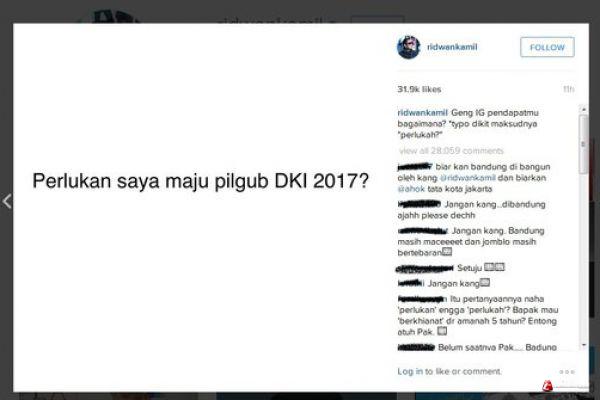Dikutip dari akun Instgramnya, ridwankamil, pria yang akrab disapa Emil ini mengunggah gambar berisi tulisan 'Perlukah saya maju di Pilgub DKI 2017?'.