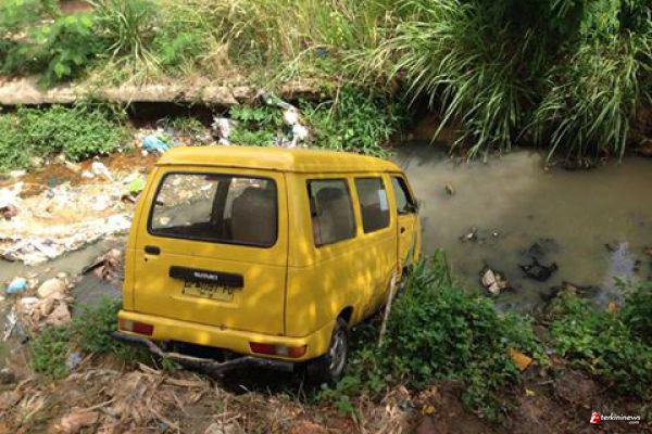 Sejumlah saksi menuturkan saat itu sang sopir memarkirka mobilnya didepan tidak jauh dari parit tempat mobil tersebut jatuh. Karena lupa menarik rem tanganpada mobil tersebut. Perlahan mobil itu bergerak dan akhirnya trjun bebas kedalam parit. Anehnya sang supir tidak sadar dan baru tahu setelah kejadian ini sudah mulai membuat keramaian.