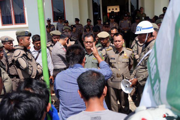 LINGGA - Kedatangan puluhan massa demonstran atas nama organisasi Gerajan Masyarakat (Gema) Lingga di halaman Kantor Bupati Lingga disambut wakil bupati Lingga M.Nizar. Ditengah puluhan masa pendemo berorasi, pemerintah siap menampung dan menindak lanjuti keluhan tersebut.