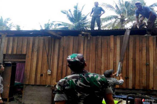 Puluhan anggota TNI dan Polri, serta warga Lubuk Napal bergotong-royong memperbaiki rumah warga yang mengalami kerusakan, akibat diterjang puting beliung.