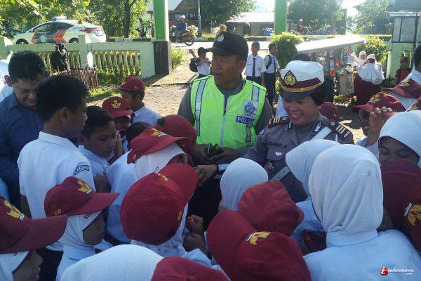 Pada kesempatan ini,Kasat Lantas Polres Maros AKP.Ernawati SH,Melaksanakan Giat Police Goes To School di SD-SMP NEGERI 28 SATU ATAP SALENRANG KAB.MAROS.