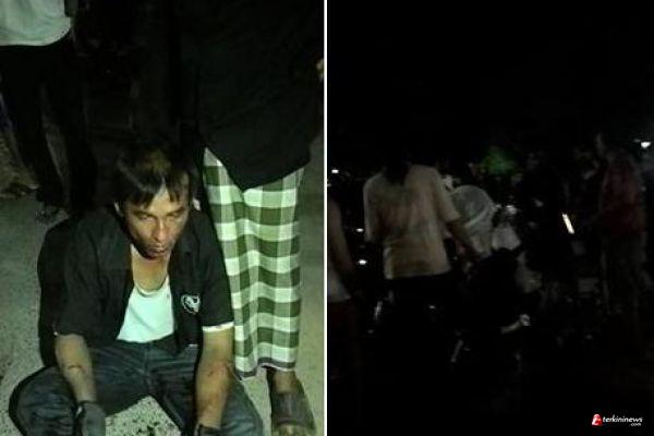 Pria berinisial R ini kepergok kelompok bapak-bapak yang baru pulang tahlilan. gerak-gerik mencurigakan membuat warga akhirnya memeriksa pria tersebut. saat ditanyai pria ini justru berpura-pura gila "waktu ditanya dia pura-pura kayak orang gila, ngomgongnya ngelantur" kata Melly, Salah seorang warga yang ada dilokasi saat itu.