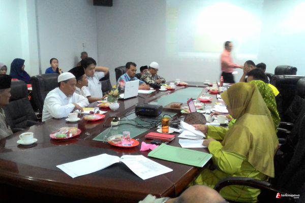 TANJUNGPINANG - Pengurus Badan Zakat Nasional (Baznas) menyosialisasikan zakat penghasilan di ruang rapat STISIPOL Raja Haji Sabtu (9/4) pagi. Segenap dosen STISIPOL Raja Haji tampak hadir dalam kegiatan tersebut.