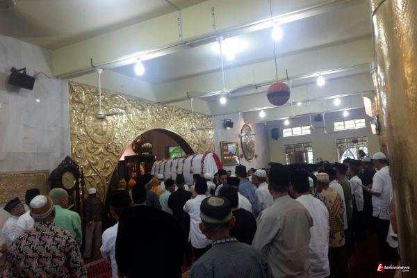 Ribuan pelayat tampak memadati masjid agung untuk bersama-sama menyalatkan jenazahnya.