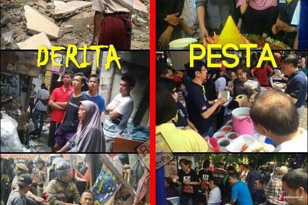 Sejak pagi hari, sebanyak 4.218 aparat keamanan gabungan dari TNI, Polri dan Satuan Polisi Pamong Praja (Satpol PP) dengan buldozer-buldozer dikerahkan Ahok untuk meratakan kios dan bangunan serta mengusir penghuninya, warga miskin Jakarta.