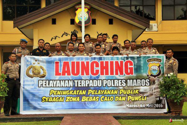 MAKASSAR - Launcing Deklarasi pelayanan yang bebas dari Calo dan Pungli pada Satuan Intelkam, Satuan Lalu Lintas dan Satuan Reskrim serta Sat Sabhara Polres Maros yang digelar dilapangan Apel mapolres Maros sekitar pukul 16.30 wita, rabu (4/5/16).