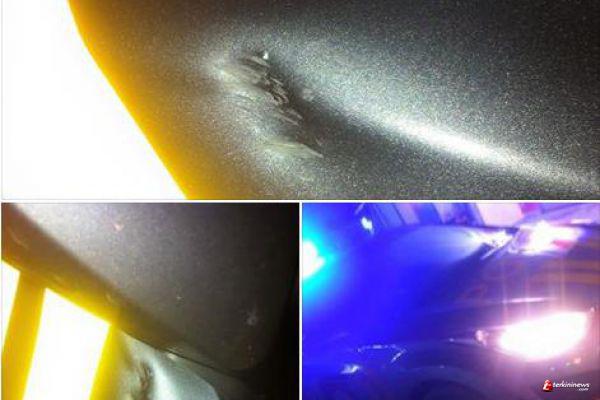 Mobil Patroli yang sedang melintas di daerah Tanjungriau dilempar orang tidak dikenal (15/5/2016). Meski polisi sempat melihat pelaku. Palaku berhasil kabur.