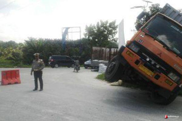 Tronton Bermuatan 30 Ton Pupuk Milik PTPN V Terbalik di Siak