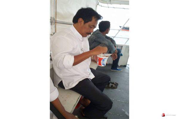 Dari foto yang diunggah oleh akun Ihsan Imamudin, terlihat sosok Nurdin tengah duduk ditengah kapal dan menyantap segelas Pop Mie.