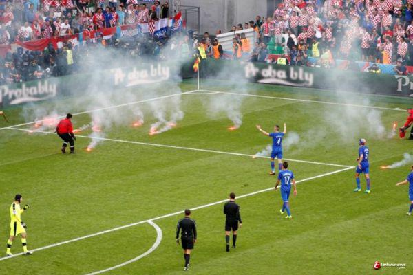 JAKARTA - Kroasia akan menghadapi sanksi UEFA setelah melakoni pertandingan Grup D Piala 2016 melawan Republik Ceska. Sebab pada laga di Saint-Etienne, Jumat (17/6), pendukung Kroasia, melemparkan flare (suar) setidaknya 10 buah ke dalam lapangan.