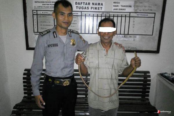ROKAN HILIR - PUJUD-Seorang pria paroh baya, Bas, warga Simpang Badak Dusun II Kepenghuluan Pondok Kresek Kecamatan Tanjung Medan Rohil melakukan tindakan Kekerasan Dalam Rumah Tangga (KDRT) dengan cara melecut istri pakai ikat pinggang. Akibatnya, yang bersangkutan dilaporkan istri kepada polisi dan berhasil ditangkap.