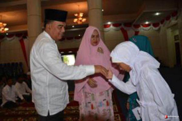 Santunan kepada anak yatim ini diberikan secara langsung oleh Bupati Kampar, Jefry Noer didampingi Ketua tim Penggerak PKK Kabupaten Kampar, Eva Yuliana yang dilaksanakan di Balai Bupati Kampar, Kamis malam (30/6/16) malam, yang juga dihadiri oleh seluruh camat yang ada di Kabupaten Kampar beserta isteri.