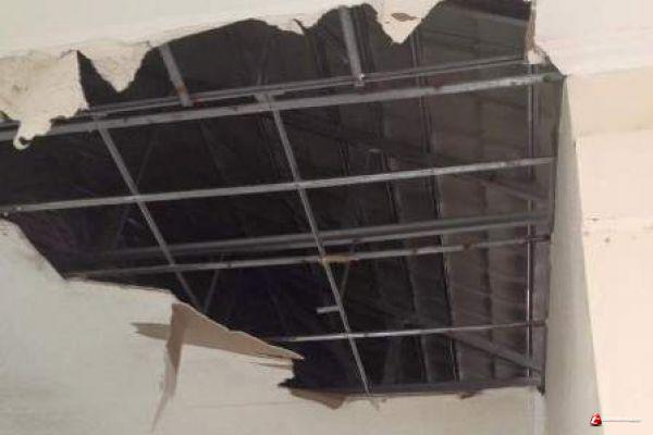 Baru Setahun, Plafon Kantor Camat Lingga Timur Sudah Rusak