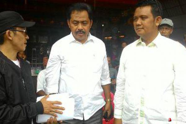 BINTAN - Bupati Bintan Apri Sujadi S.Sos menyerahkan bantuan untuk korban kebakaran yang dialami warga Kompleks Pasar Berdikari Kijang Kecamatan Bintan Timur, pada Selasa (16/08/2016) pagi. Bupati Bintan Apri Sujadi S.Sos, mengatakan Pemkab untuk sementara memberikan uang santunan kepada para korban 29 KK sebanyak Rp25 juta dan beberapa bahan kebutuhan pokok.