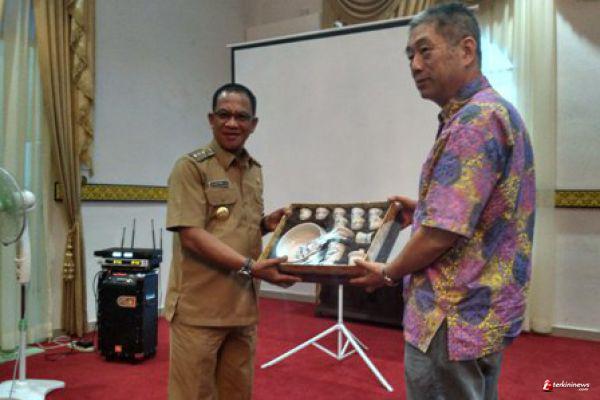 LINGGA - Asosiasi Pengusaha Tiongkok- Kepri Indonesia (APTKI) kunjungi Bunda Tanah Melayu (BTM) kabupaten Lingga untuk berinvestasi. Perusahan-perusahan yang berkantor di Batam tersebut memaparkan company profil di Gedung Daerah pemerintah kabupaten Lingga, Senin (22/8).