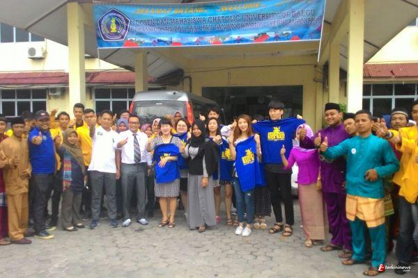 TANJUNGPINANG - Sebanyak 30 mahasiswa Universtas Chatolice Daqoe Korea mengunjungi STISIPOL Raja Haji Tanjungpinang, Kepulauan Riau pada Sabtu (14/1). Kunjungan edukatif ini merupakan kegiatan pertama yang dilakukan mahasiswa Korea tersebut.
