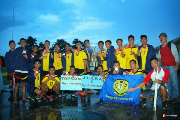 LINGGA - Kecamatan Singkep Pesisir akhirnya meraih kemenangan memboyong piala turnamen Lingga Terbilang Cup (LTC) I U-19, setelah berhasil menundukkan Kecamatan Lingga Utara pada partai final lewat adu pinalti dilapangan Sultan Mahmud Riayat Syah III, Daik Lingga, Minggu (30/04).