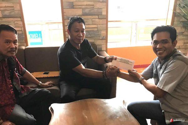 Surat undangan yang ditandatangani Ketua Dewan Pimpinan Daerah (DPD) PDIP Sulsel, H. Ridwan Wittiri, dan sekretarisnya, Rudy P. Goni, SE MM., diserahkan langsung oleh Ketua DPC PDIP Wajo, Ambo Upe Ali, kepada Andi Undru Mario (AUM) di Kafe & Resto De Pujasera, Jalan Landak Baru, Makassar, Selasa (04/07/2017). terkininews.com