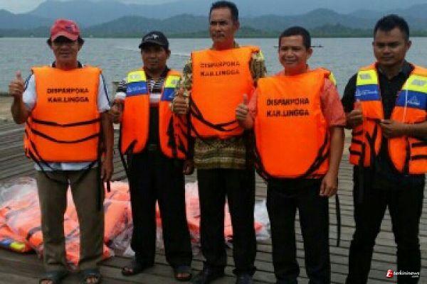 LINGGA - Dinas Pariwisata, Pemuda dan Olahraga (Disparpora) Kabupaten Lingga melalui bidang Destinasi membagikan bantuan kurang 100 life jacket kepada sejumlah jasa transportasi pancong. Penyerahan bantuan tersebut, merupakan bantuan dari Dinas Pariwisata Provinsi Kepri.