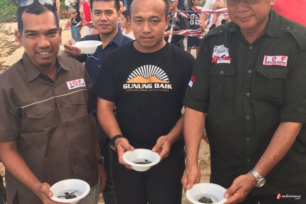 Mengisi Kemerdekaan, IOF Pengcab Lingga Merdekakan Tukik di Pantai Marquez Dabo