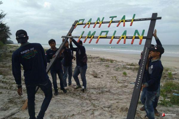 LINGGA - Mahasiswa kukerta STISIP Bunda Tanah Melayu merealisasikan program pariwisata yaitu pembuatan plang nama pantai di pantai Impian Desa Teluk. Usaha ini dilakukan guna mengundang pengunjung sebagai bipaya memperkenalkan pantai di ujung Utara pulau Lingga tersebut.