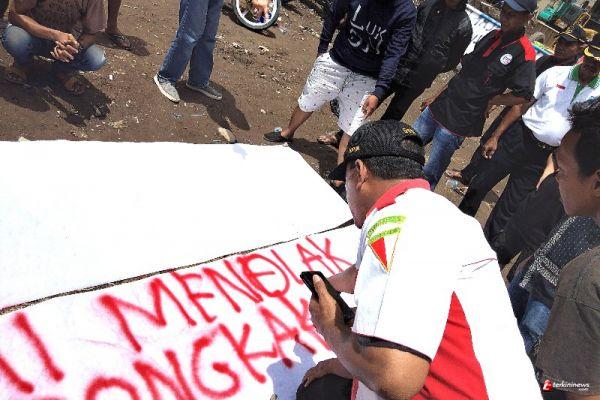 Para pedagang juga memasang spanduk yang bertuliskan "Jelas kami hanya menyepakati betonisasi jalan 12 Meter di sepanjang jalan KH. Agus Salim" kutip tulisan spanduk yang di bentang HIPIM. Senin (27/11/2017), terkininews.com.
