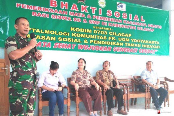 Dalam rangka Bhakti Sosial TNI Kodim 0703/Cilacap, Sabtu (06/01/2018), bekerjasama Oftalmologi Komunitas Fk. UGM Yogyakarta Yayasan Sosial Dan Pendidikan Taman Hidayah Cilacap menggelar bhakti sosial.