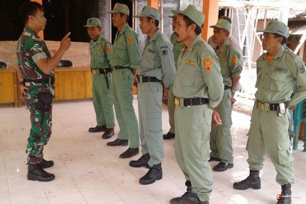 CILACAP - Serda Sulistiyono selaku Babinsa dari Koramil 14/Cimanggu, Kodim 0703/Cilacap melakukan pelatihan dan pembinaan terhadap anggota Linmas di Desa Cisalak, Kecamatan Cimanggu, Kabupaten Cilacap, guna memantapkan kedisiplinan.