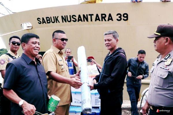 BINTAN, -- Bupati Bintan H Apri Sujadi yang didampingi wakil Bupati Drs H Dalmasri Syam, MM resmi melepas bantuan bagi korban bencana banjir dan tanah longsor masyarakat kecamatan Tambelan di pelabuhan Sri Bay Intan, Kijang , Kec Bintan Timur. terkininews.com