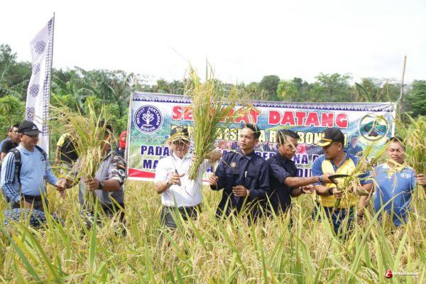 LINGGA - Sebanyak 150 mahasiswa D1 IPB Bogor di Kabupaten Lingga lakukan panen padi perdana di lahan pertikum Lapangan di Desa Batu Kacang, Kecamatan Singkep. Jenis padi yang di tanam ialah padi jenis Gogo.