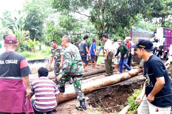 Jembatan Darurat Rampung Sinergi Babinsa dan Warga Cimanggu