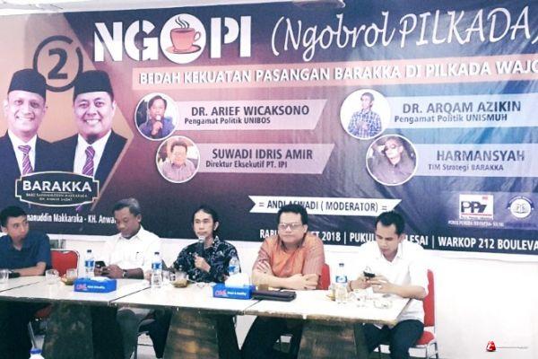 Dalam diskusi bertema Bedah Kekuatan Pasangan Barakka di Pilkada Wajo yang digelar Poros Pemuda Indonesia (PPI) Sulsel dan Grup Whatsapp Political School itu, Suwadi mengutarakan bahwa naiknya elektabilitas Barakka selain disebabkan oleh kepuasan publik Wajo terhadap kepemimpinan Bupati Andi Burhanuddin Unru, juga disebabkan oleh performa pergerakan tim Barakka yang lebih massif ketimbang Pammase.