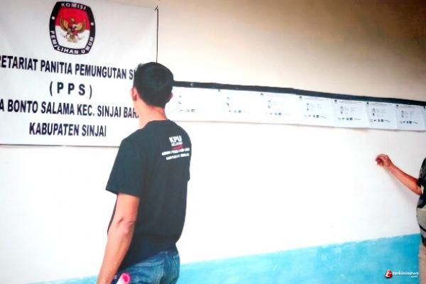 SINJAI, -- Sekretaris Komisi Pemilihan Umum (KPU) Sinjai M Haris bersama komisioner divisi lrogram dan data Muh Kasim melakukan monitoring pengumuman daftar pemilih sementara (DPS) di kecamatan Sinjai Barat, kabupaten Sinjai.