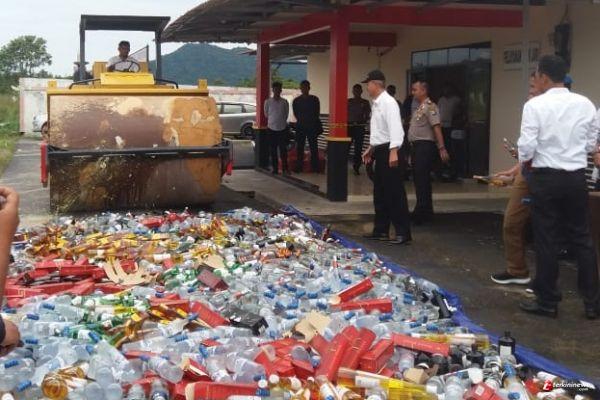 "Pemusnahan mnuman keras dan knalpot racing ini sudah yang kesekian kalinya kami lakukan, dan ini akan kami lakukan terus menerus," katanya.