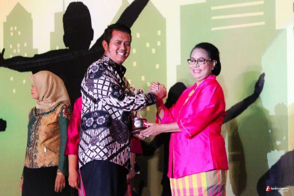 BINTAN - Bupati Bintan H Apri Sujadi, S.Sos menerima Penghargaan Kabupaten Layak Anak Tahun 2018 dari Menteri Pemberdayaan Perempuan dan Perlindungan Anak RI Yohana S Yambise di Dyandra Convention Centre , Surabaya Jawa Timur, Senin (23/7) malam.