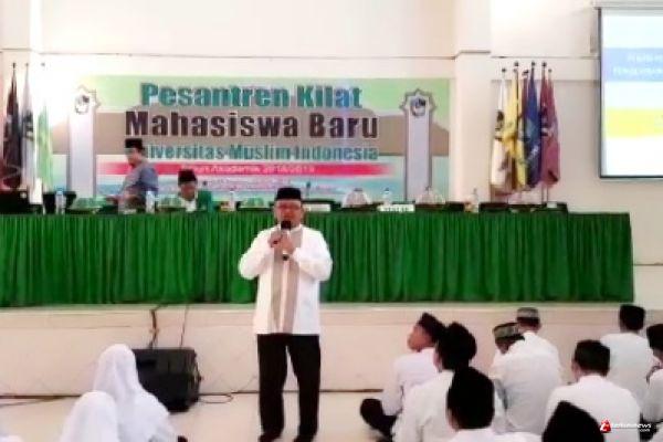 Dihadapan 700 lebih maba fakultas sastra dan pertanian UMI, Sabtu (1/9/2018). Basir mengatakan, bahwa dengan pesantren kilat yang diberikan kepada seluruh maba UMI, bertujuan menghasilkan manusia yang memiliki cirikhas dan berfikir sebagaimana Alquran.